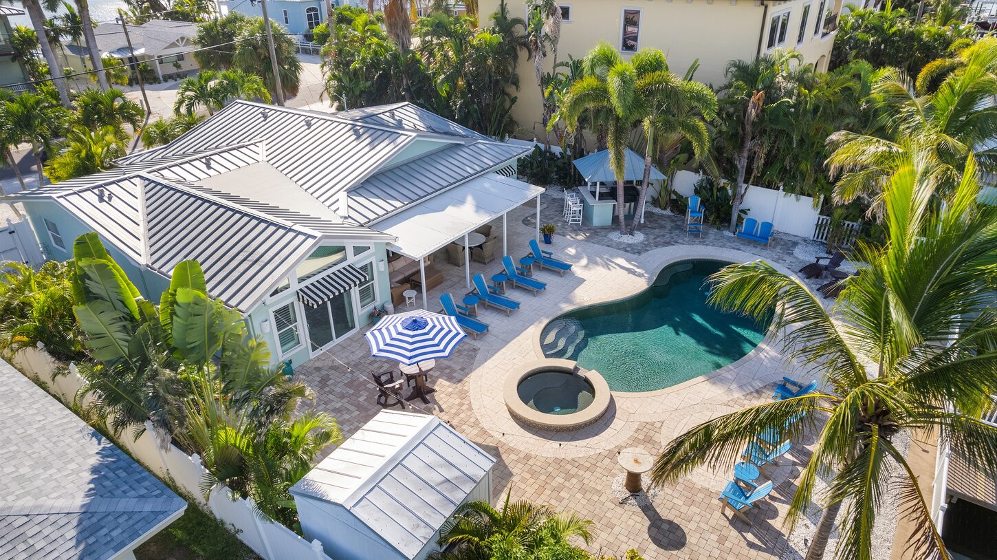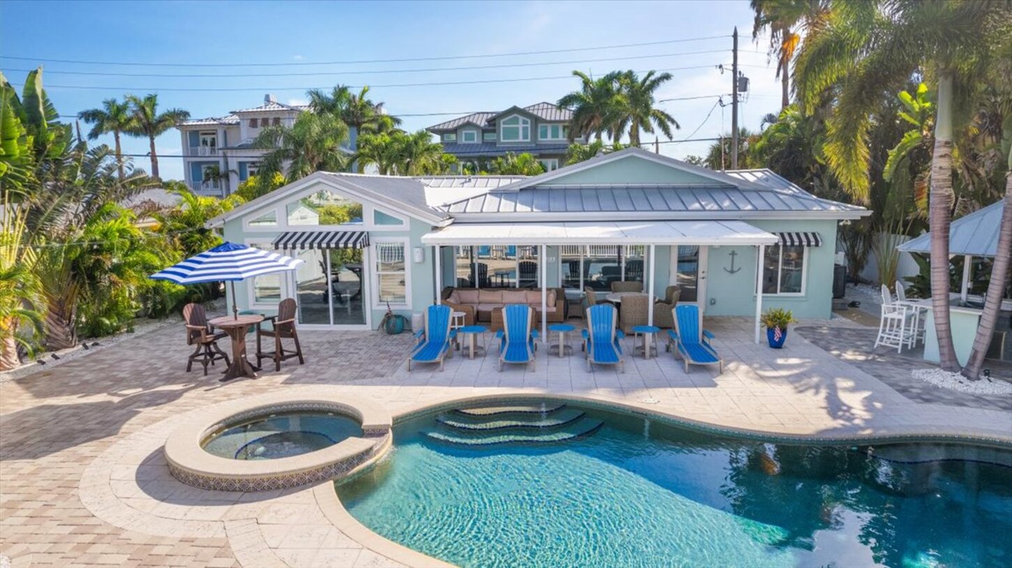 Welcome to your ultimate Indian Rocks Beach retreat, just a 2min golf cart ride from the beach! This spacious and stylish 4-bedroom waterfront home blends coastal charm with resort-style amenities. Lounge by the private pool, soak in the spa, or explore the area in your own 6-seater golf cart. With intercoastal views, beach gear included, and top-notch local recommendations, it's the perfect Florida escape for families and friend groups alike.